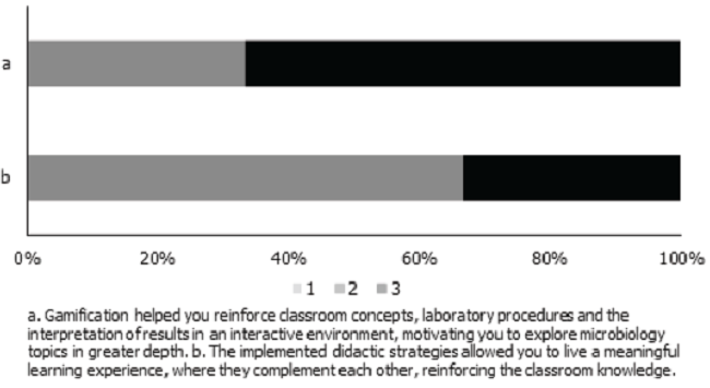 Learning outcomes can be improved when gamification is used as part of a varied curriculum along with other didactics focused on the theoretical and experimental development of components of the microbiology course (Werbach, 2014; Yildirim, 2017), indicating in this sense that the implementation of complementary pedagogical units in the Microbiology course enriches the learning process and potentiates the engagement of the students while increasing their resilience to the circumstances of the current pandemic (de A. F. F. Finger et al.. 2020).