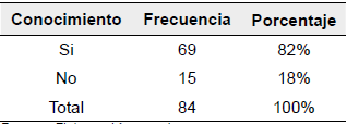 Además, a partir de los 84 participantes se puede apreciar que el 82% manifestó que tiene conocimiento de los benefícios de la miel.