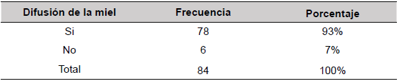 Considerando los 84 participantes, el 93% senala que el producto de la miel necesita más difusión.
