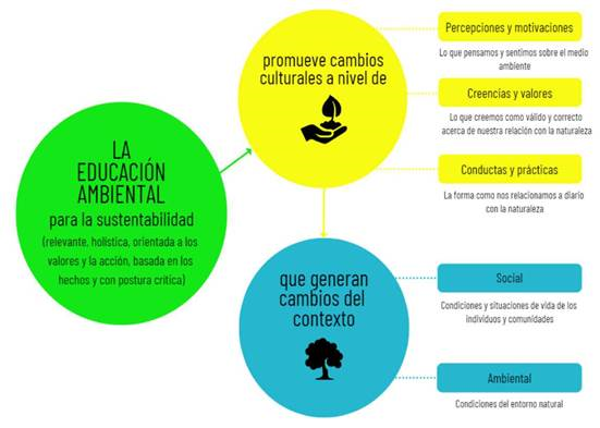 Tales cambios a nivel de resultados e impactos se ven condicionados por los valores éticos, las concepciones culturales, las dinámicas socioeconómicas del desarrollo y el ejercicio del poder político, se van gestando en el tiempo en cuanto a modificación de modos de raciocinio, consideración de nuevos escenarios de relacionamiento con el medio ambiente, sustitución de prácticas medioambientales, reconocimiento de realidades sociales y económicas específicas, recuperación de símbolos y significados culturales de la naturaleza, implementación de alternativas de subsistencia sustentables, y construcción de tejido social colaborativo y formas de unión, lucha y participación ciudadana.
