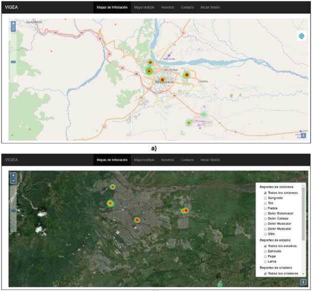ABSTRACT: The Aedes aegypti mosquito is an anthropophilic species that has adapted to urban environments and it is the main vector of diseases such as dengue, Zika fever; Chikungunya disease and yellow fever; which represents a significant burden on the health system, especially in tropical countries where it is endemic. Properly exercising public health surveillance is essential for the prevention of these diseases through information systems. The purpose of this work is to provide an information technology (IT) platform, integrating open technologies Web GIS and mHealth for the entomological surveillance ofthe vector; based on crowdsourcing for the generation of infestation maps. A pilot was carried out with a focus group of 23 students from the epidemiology course, which allowed the registration of l20 elements in 55 reports at the Universidad de los Llanos for the automatic generation of 2l heatmaps of symptoms, mosquitoes and breeding sites, and a global infestation map. This work suggests a novel perspective of interaction and collaborative participation of the community with health authorities supported by IT