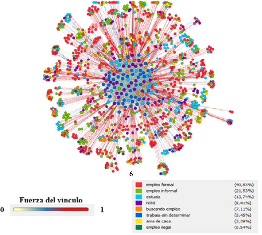 En resumidas cuentas, se identificaron estructuras de redes pequeñas que tendrán implicaciones en la transferencia de información laboral y en los estados laborales de población joven analizada.