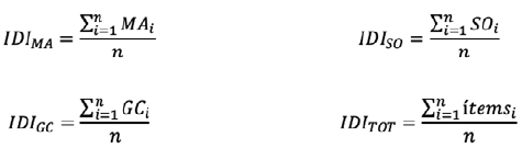 A partir de esta metodología, se podrán obtener índices parciales y un índice total (IDITOT). La representación matemática de los índices es la siguiente:
