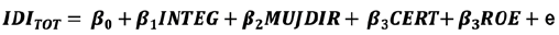 Para evaluar la relación entre las variables (independientes) o regresores que intentan explicar este nivel de revelación mediante el tamaño del directorio, la participación femenina en el directorio, la rentabilidad de la empresa y la certificación, en relación con el nivel de divulgación de información medioambiental basados en ODS (el índice total como variable dependiente), se estimarán modelos de regresión lineal múltiple.