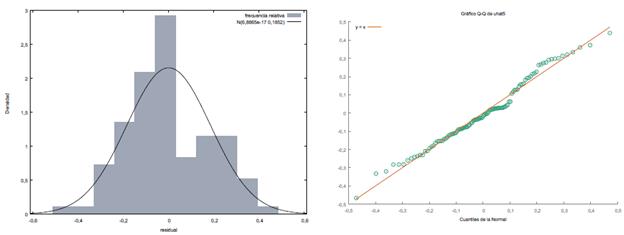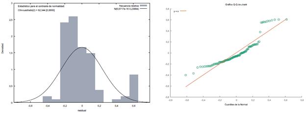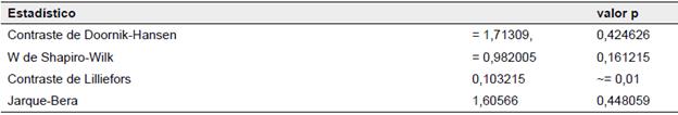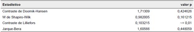 Se puede observar que ha resultado significativa sólo la variable 'ROE' al 10% de significancia, lo que sería indicativo de la relevancia de esta variable sobre la divulgación total medida en las empresas polacas, esto es, en un contexto de relevancia del modelo con sólo un 12,7% de significatividad según su R2 ajustado. No han resultado variables significativas el tamaño del directorio, el número de mujeres en el directorio ni las certificaciones que, como se dijo, en el caso polaco, todas las poseían. Los estadísticos resultantes de los test de normalidad para las empresas polacas de la muestra en estudio se presentan a continuación en la Tabla 10 y en la Figura 2 del Anexo B.