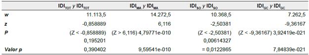 Se ha considerado evaluar los resultados a nivel de los índices total y subíndices por país para comprender si las diferencias descritas anteriormente son significativas en términos estadísticos. Las hipótesis son: