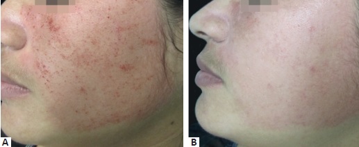 Conclusion: The retinoic acid peeling solution can be safely used following procedures that lead to a loss of integrity of the skin barrier. The absence of adverse effects and good results yielded by the procedure suggest that the association of microneedling and retinoic acid peeling is an innovative, reproducible and safe proposal.