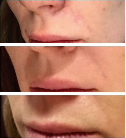 MSM, do sexo feminino, 31 anos, buscou atendimento para realização de harmonização facial. Foi realizada aplicação de ácido hialurônico em vários locais da face e, entre eles, no sulco nasogeniano esquerdo proximal profundo (fossa piriforme), com agulha a 90º e aspiração prévia à injeção de 0,1ml de Emervel Deep® (Galderma, Otten, Suíça). Imediatamente, foi observada área eritêmato-arroxeada que se estendeu da região lateral esquerda da asa nasal até a região média do sulco nasogeniano ipsilateral. Após 12 horas, devido à permanência das alterações e hipótese de oclusão arterial, optou-se pela degradação precoce com 400UI de hialuronidade (Biometil®) e uso de sildenafil 100mg/dia, clexane (Sanofi-Aventis Farmarcêutica Ltda, Suzano, São Paulo) 40mg/ dia, prednisona (Eurofarma, São Paulo, Brasil) 40mg/dia, ciprofloxacina (Eurofarma, São Paulo, Brasil) 500mg 12/12 horas e claritomicina (Eurofarma, São Paulo, Brasil) 500mg 12/12 horas, durante 15 dias. Também foi realizada ultrassonografia com Doppler - US Doppler do local, cujo resultado mostrou fluxo sanguíneo normal. Evidenciaram-se melhora da coloração após dois dias da degradação e resolução completa após quatro dias.