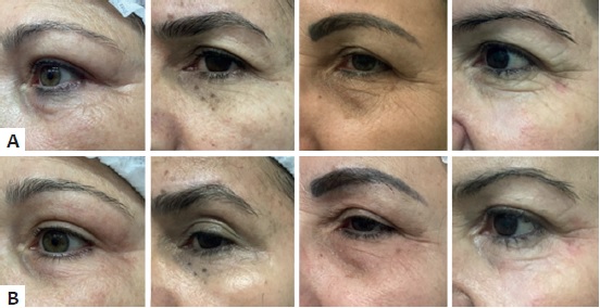 Introduction: Wrinkles, sagging, changes in texture and skin pigmentation in the periorbital region are common complaints in dermatologic practices. Several treatment options, including fractional radiofrequency, which has been shown safe and effective, have been described.