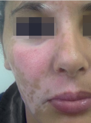 Duas pacientes do sexo feminino com vitiligo segmentar e estável na face há mais de dois anos e sem resposta a tratamento clínico foram selecionadas (Figuras 1 e 2). Ambas haviam sido tratadas clinicamente com hidrocortisona creme 1% durante três meses e, posteriormente, com tacrolimus 0,03% durante mais três meses, totalizando seis meses de tratamento, durante o qual realizaram também duas sessões semanais de fototerapia.