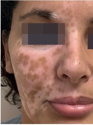 O vitiligo é desordem adquirida da pigmentação, caracterizada por máculas acrômicas bem definidas na pele com perda de melanócitos epidérmicos. As lesões são localizadas ou generalizadas podendo coalescer em grandes áreas despigmentadas. Dado o contraste entre áreas lesionadas e pele normal, é mais desfigurante em fototipos altos e tem profundo impacto sobre a qualidade de vida.1