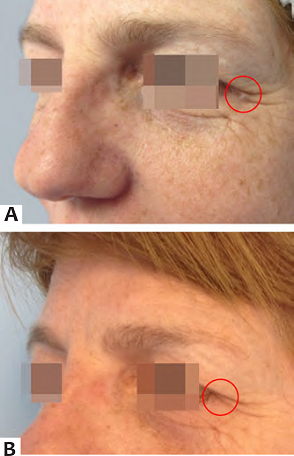 O procedimento é simples, bem tolerado, tem boa evolução pós-procedimento e não apresenta risco de deixar cicatriz.13 A dor é um efeito adverso transitório, geralmente presente somente durante a aplicação. Cefaleia, náusea, ptose palpebral e assimetria facial são efeitos adversos incomuns.2