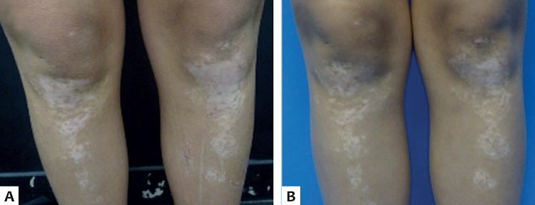 No momento basal e no término do tratamento, após 12 semanas, foram realizados registros fotográficos em estúdio, com câmera fotográfica Lumix Panasonic, com imagens tanto integrais do corpo dos pacientes em estudo quanto de cada lesão de vitiligo.