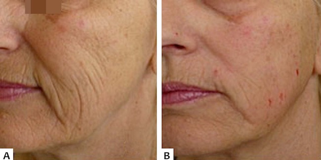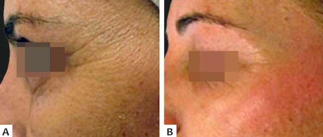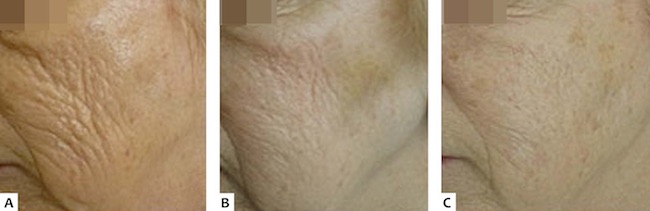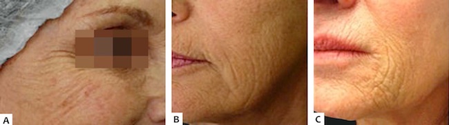 Houve alto grau de satisfação das pacientes com o tratamento, observando-se grande melhora das linhas e rugas, além da melhora do turgor e do aspecto geral da pele, com uma única aplicação, porém algumas pacientes solicitaram uma segunda aplicação devido à fina espessura cutânea, à profundidade das linhas e rugas e à extensão das áreas de acometimento.