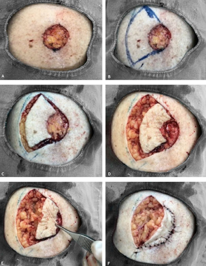 Aragón-Miguel R, Gutiérrez-Pascual M, Sánchez-Gilo A, Sanz-Bueno, Vicente-Martin FJ. Aplicación del colgajo de keystone em dermatologia. Experiencia clínica em 18 pacientes. Actas Dermosifiliogr. 2018;109(6):515-520.