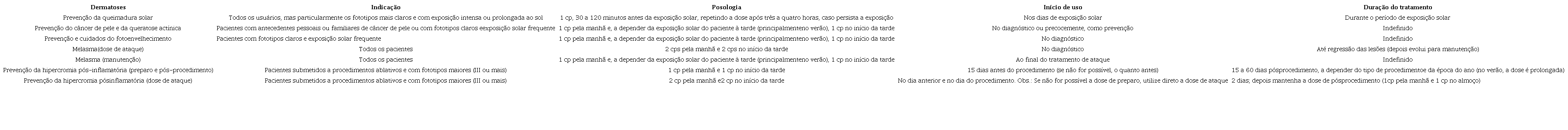 Idealmente, a recomendação do uso da fotoproteção oral deveria ser realizada durante todo o ano, assim como o uso de protetores solares, considerando os altos índices de radiação ultravioleta mesmo nos meses de inverno no Brasil.