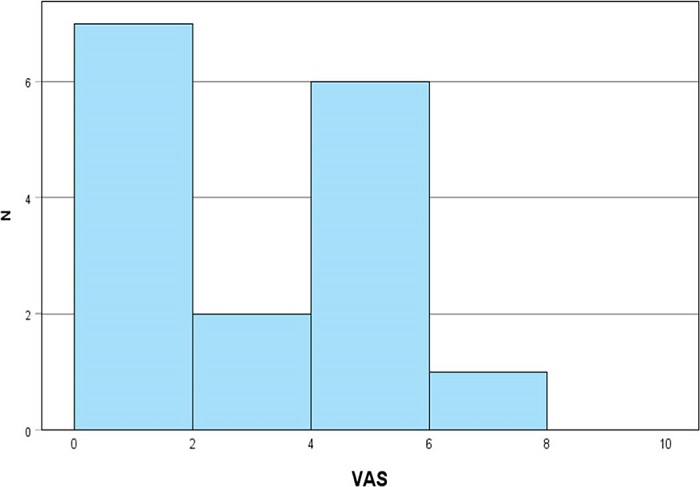 A figura 1 apresenta o número de lesões no dia da aplicação e a contagem das lesões no D28. A figura 2 apresenta a quantificação da dor, avaliada por meio da VAS. Não houve efeitos adversos graves, e o tratamento foi bem tolerado.