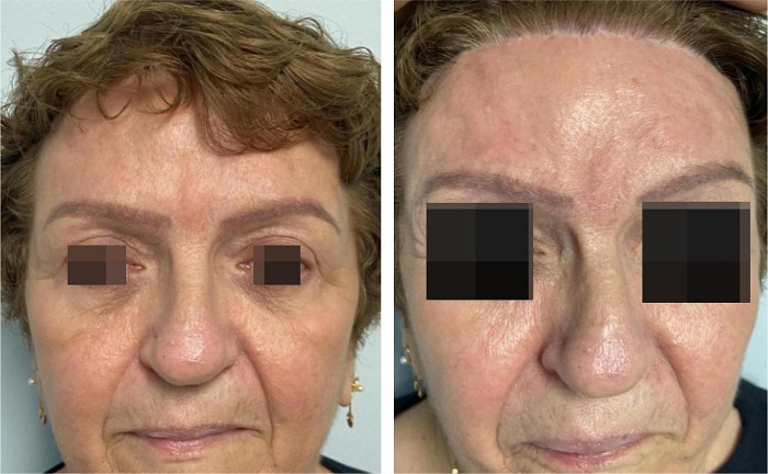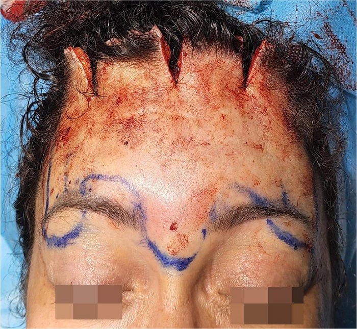 ABSTRACT: The appearance of the upper third of the face is a key indicator of aging and plays a significant role in communication by conveying non-verbal information. Different surgical techniques have been described for the rejuvenation of this region, with transfollicular subcutaneous forehead and brow lift enabling excellent results by lowering the hairline, reducing forehead height, softening forehead and glabellar rhytids, raising the eyebrows, and improving pseudodermatochalasis. This technique offers the advantages of reduced risk of nerve injury and excellent scalp scar camouflage.