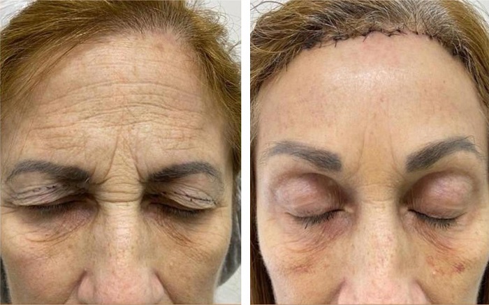 RESUMO: A aparência do terço superior da face é um dos principais indicadores de envelhecimento e desempenha um papel significativo na comunicação ao transmitir informações não verbais. Diferentes técnicas cirúrgicas têm sido descritas para o rejuvenescimento dessa região, com o lifting transfolicular subcutâneo do terço superior da face possibilitando excelentes resultados ao abaixar a linha de implantação capilar, reduzir a altura da fronte, atenuar rítides frontais e glabelares, elevar as sobrancelhas e melhorar a pseudodermatocálase. Essa técnica apresenta as vantagens de menor risco de lesão nervosa e excelente camuflagem da cicatriz no couro cabeludo.