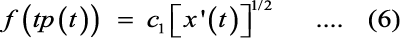 El objetivo del problema es encontrar la trayectoria de la tasa de producción x’(t) y el inventario x(t) que minimice el costo total de producir las B unidades en un tiempo T. Para resolverlo es necesario conocer la función de costo unitario de producción f(tp(t)); a modo de ejemplo vamos a suponer que la función es creciente, o sea con primera derivada positiva pero decreciente, y proponemos que la función sea proporcional a la raíz cuadrada de la tasa de producción (Gráfica 1):