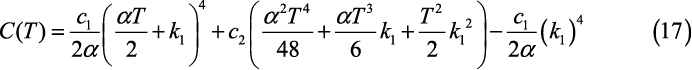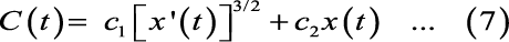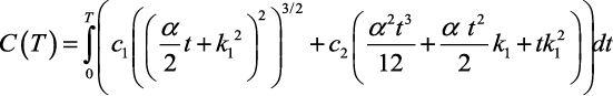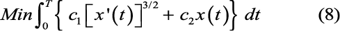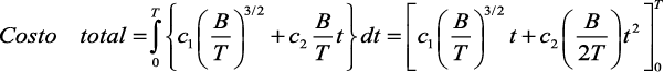 Sustituyendo x(t) y x’(t) en (7), en términos de k1 y k2 e integrando, el costo total será