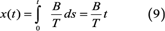 Se define a x(t) como el inventario acumulado en el tiempo t con x(0)=0 (no hay existencias en el inventario al inicio del periodo) y al final del periodo T, x(T)=B (aquí B representa el volumen de inventario al final del periodo).