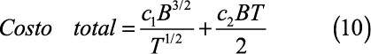 Para evaluar ambas situaciones y poder comparar los costos totales (ecuaciones 10 y 17), la primera con una tasa de producción constante dada por x’=B/T y la segunda con una tasa