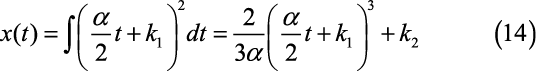 Para integrar 11), se hace el cambio de variable u=x’ y du=x’’dt; de esta forma, reordenando se tiene que
