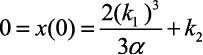 La solución contiene dos constantes de integración k1 y k2 las cuales se calcularan a partir de las condiciones iniciales. También aparece el parámetro α que tiene que ver con la relación entre las constantes c2 /c1.