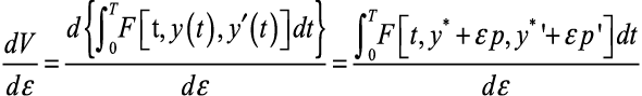 Ahora bien, se puede considerar a V como una función que depende de ε, de esta forma es posible visualizar el problema de la búsqueda de la función extrema recurriendo al cálculo tradicional proponiendo