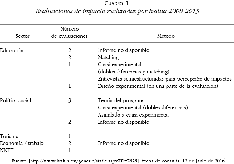 A excepción de Ivàlua, cuyo énfasis en la experimentación es notorio, las evaluaciones de impacto son aún escasas en los organismos de evaluación en España, no así las publicaciones sobre el tema, que son cada vez más frecuentes,10 en especial aquellas que apuestan por los métodos experimentales, y mucho más que en América Latina.
