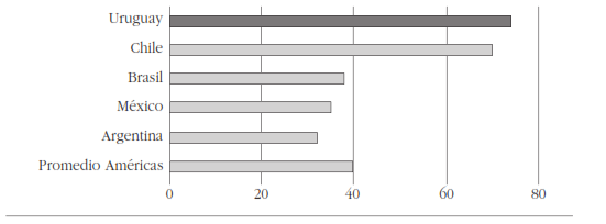 Una referencia aparte merece el hecho de que en general la sociedad uruguaya considera al sistema político y la administración pública relativamente confiables. Uruguay es el país de América Latina mejor ubicado respecto de la percepción de corrupción por parte de la ciudadanía (Gráfica 1).