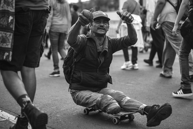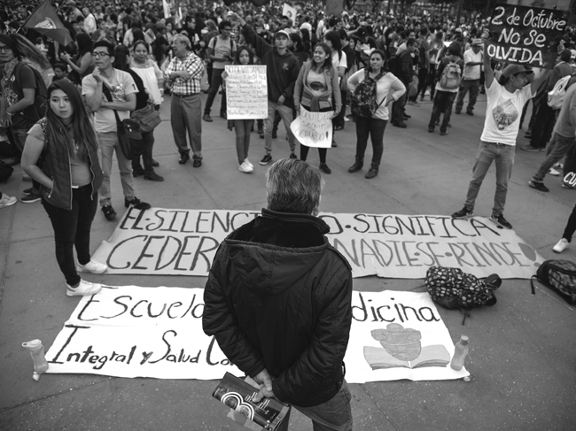¿Qué son los derechos humanos? Para la Comisión Nacional de los Derechos Humanos son un “conjunto de prerrogativas sustentadas en la dignidad humana, cuya realización efectiva resulta indispensable para el desarrollo integral de la persona. Este conjunto de prerrogativas se encuentra establecido dentro del orden jurídico nacional, en nuestra Constitución Política, tratados internacionales y las leyes.” Sin embargo, esta definición puede quedar acotada por una realidad que, abatida por el desquicio de la modernidad, corroe y lacera de manera exponencial nuestras formas de entender al otro; que jurídicamente halla invariablemente la forma de beneficiar al poderoso y que, aun estipulados los decretos en los tratados y leyes nacionales e internacionales, dejan a los “derechos humanos” inertes ante el lascivo y exponencial “inconsciente humano”. En México, pareciera inevitable ser víctima de la violación de algunos de estos derechos, aun en nuestra cotidianidad y por las razones más inadmisibles, ser mujer, ser niño, ser parte de la comunidad LGBT, ser obrero o campesino, tener creencias distintas al otro, ser vendedor ambulante, ser madre, padre, hijo, estudiante, nadie está exento. Así entonces se perpetúa una lucha surgida desde el hartazgo de quienes han sido víctimas de los abusos y las injusticias, lucha en la que se está dispuesto a dar incluso la vida por defender la de los venideros. Y es esta acción de la lucha, tanto colectiva como individual, la que deja entrever esta enorme y creciente necesidad de cambio. La serie “Derecho a la lucha” busca ser una alarma visual que presente, desde sus diversos contextos, a los actores sociales y su lid que, aparentemente intrascendente para muchos ojos, es fundamental para la radical transformación de la realidad.