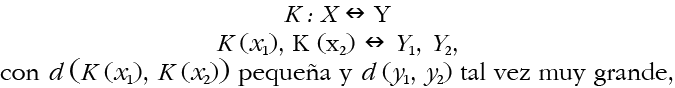 Un espacio X tal que si x1 y x2 son elementos “cercanos” (su distancia es pequeña en algún sentido) en X, resulte que sus respuestas K(x1) y K(x2) puedan ser muy “distantes” en Y. Un esquema más adecuado en este contexto es: