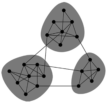 Dentro de las redes aleatorias se pueden encontrar las modulares y jerárquicas. Las primeras consisten en grupos de nodos interconectados entre sí que constituyen comunidades o módulos, que a su vez están conectados entre sí con una menor densidad de aristas. Aquí se pueden hallar dos subtipos importantes: concéntricas y egocéntricas. El primer subtipo se refiere a un nodo que involucra a la mayoría de las aristas de la red, ocasionando que sea el centro de ésta. El segundo consiste en la extracción de un nodo vinculado con una red más amplia de forma modular.