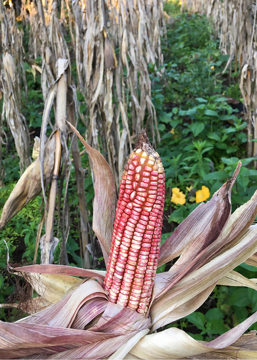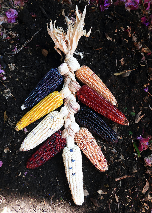 Trenza de maíces nativos, Grupo Vicente Guerrero, Tlaxcala, 2022.