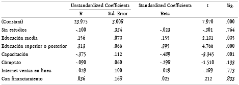 Para investigar si las variables de nivel de estudio y estratégicas pueden explicar la proporción de muertes en los negocios, se aplicó un análisis de regresión lineal. Se utilizó el paquete estadístico SPSS para realizar el ajuste de datos y se implementó una regresión lineal múltiple para examinar las relaciones entre las variables independientes y la variable dependiente.
