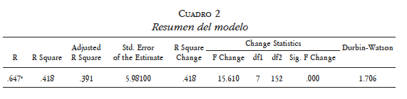 El modelo de regresión lineal fue el siguiente: