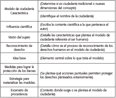 Además, se propuso la ficha de análisis (véase la Tabla 1) alrededor de las manifestaciones históricas de la ciudadanía. Esto permitió contar con un panorama integral del objeto de estudio y su apropiación en las distintas épocas de la historia.