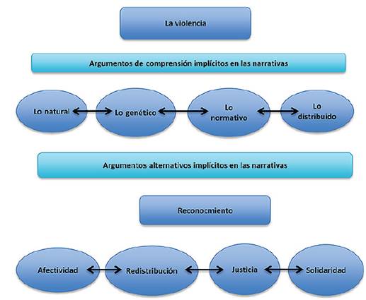 Luego se usan las subcategorías y los argumentos que emergen en cada una de ellas, a fin de elaborar un mapa de relaciones que permita ser confrontado con los actores en un diálogo conjunto (véase la figura 1).
