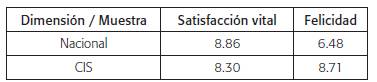 Si se comparan los principales resultados de este trabajo con la encuesta realizada a nivel nacional por el INEGI (2018), encontramos que la media de la satisfacción vital y el índice de felicidad son mayores en los beneficiarios y beneficiarias de los CIS (Ver Tabla 8).