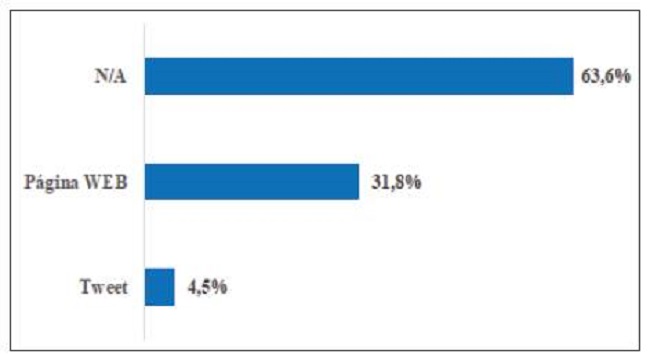 Esta información contrasta con las publicaciones originadas en el medio mismo, que suman únicamente el 23 % y aparecen suscritas por las redacciones de las secciones "Vivir", "Bibo" y "Medio Ambiente".
