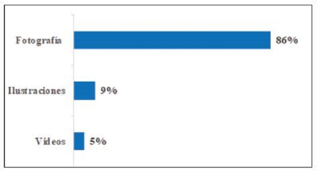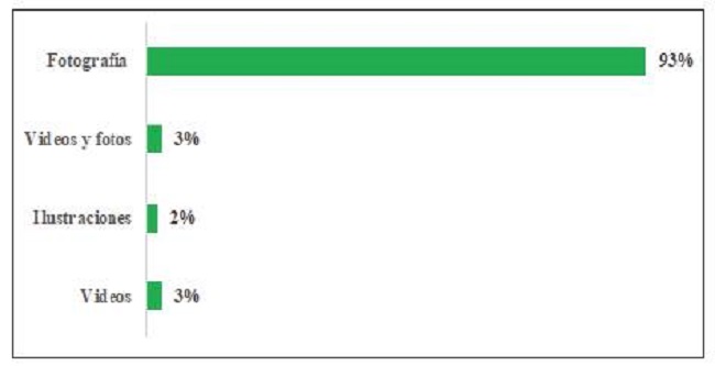 Frente a recursos complementarios, El Espectador utiliza un promedio de un complemento por publicación. Hay una publicación que tiene cinco complementos, no obstante lo cual, cabe aclarar, son del mismo tipo: fotografías paralelas en las que el usuario puede identificar el cambio en la calidad del aire en la India antes y durante el confinamiento. El complemento más utilizado es la fotografía (86 %), emulando el clásico uso de la versión análoga, el 9% de las publicaciones usa ilustraciones, y solo el 5 % aprovecha la convergencia digital para complementar y/o ampliar la información con videos.