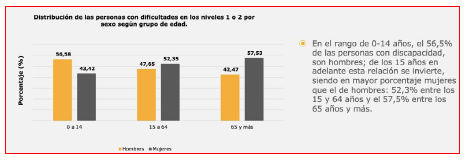 En Colombia hay 3 134 037 personas con dificultades para realizar actividades básicas diarias (7,1 % de la población del país), de los cuales 1 784 372 (4,07 % de la población del país) reportaron tener dificultades en los niveles de severidad 1 o 2 según la escala del Washington Group (Departamento Administrativo Nacional de Estadística [DANE], 2020) (ver figura 1). La información descargada del DANE aborda varios aspectos relacionados con la discapacidad, ya que el consolidado proporcionado por esta entidad clasifica a la población según diferentes grupos sociales, como etnias según departamentos, niveles de escolaridad, actividad laboral, sexo, estado de salud, condición de pensionados, acceso a internet e índice de pobreza. Dicha cifra es importante, ya que representa un gran número de personas, y es por ello que se plantean mecanismos que permitan la inclusión de esta población (discapacitados visuales, para el caso de este proyecto) en la sociedad. El sector de los videojuegos no es ajeno a esto, por lo cual se ha incursionado en la implementación de la accesibilidad para estas y otras condiciones, por esto se buscan leyes, decretos, directivas que incluyan a esta población en proyectos del sector de los videojuegos.