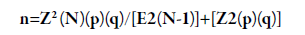 n=(1,95)2 (939)(0,5)(0,5)/[(0,05)2(939-1)]+[(1,95)2(0,5) (0,5)]= ≅ 96 encuestas