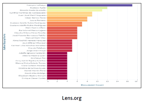 Respecto a la investigación de artículos, la siguiente gráfica nos muestra los autores más activos desde 2018 a 2023 de acuerdo con la investigación de la Responsabilidad Social Universitaria.