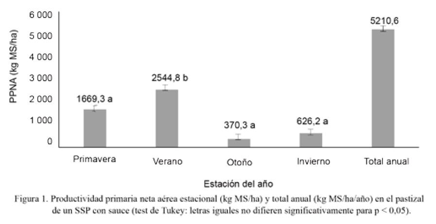 De esta forma, en el verano se acumuló casi la mitad de la productividad de MS total, con diferencia estadísticamente significativa respecto al resto de las estaciones, que no difirieron entre sí.