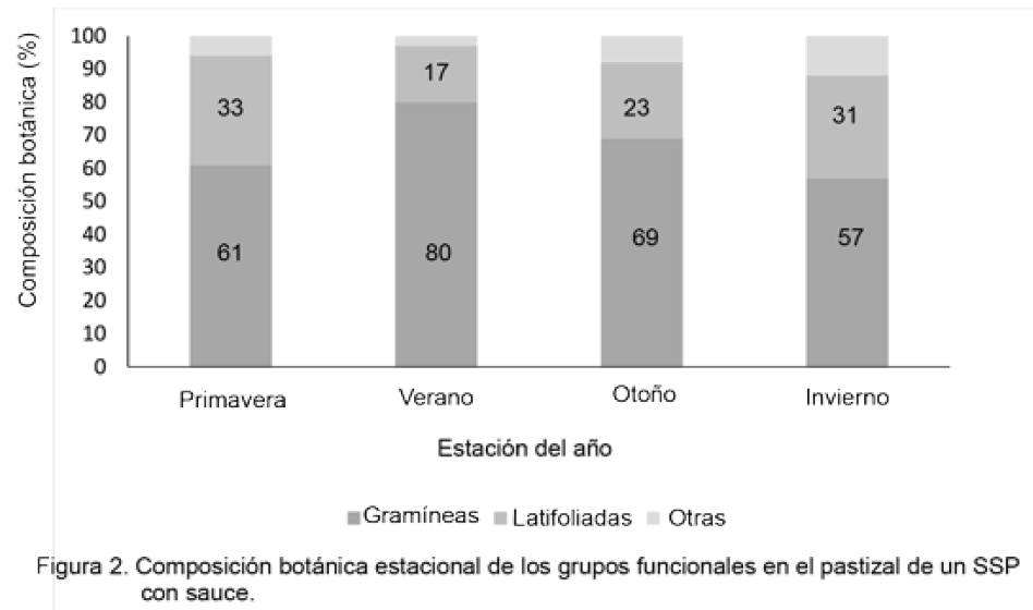 Evaluation of the natural pastureland in a silvopastoral system with willow (Salix humboldtiana)