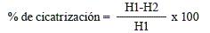 El porcentaje de cicatrización se determinó a partir de la siguiente ecuación:
