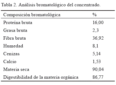 La composición bromatológica del alimento utilizado (concentrado para la categoría inicio de cría, de origen nacional) se detalla en la tabla 2.